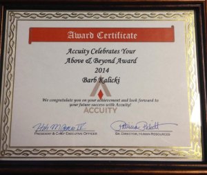 Accuity Above and Beyond Award – 2014 & 2015 for going above and beyond in the marketing role. Only one award given per department each year.